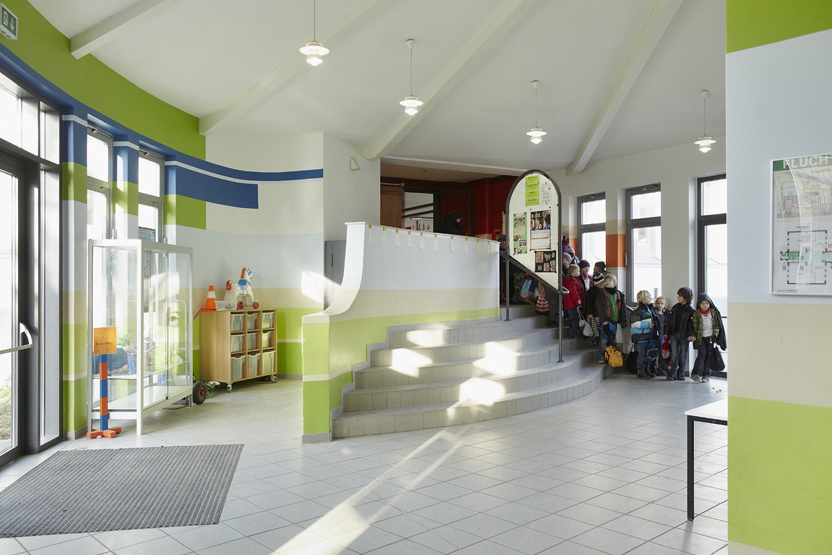 Am 09.08.93 konnte mit dem Bau begonnen werden. Schon nach einem Jahr Bauzeit war der Bau bezugsfertig. In den Jahren 2005 bis 2008 wurde die Schule zur Offenen Ganztagsgrundschule um- und ausgebaut und insgesamt modernisiert.